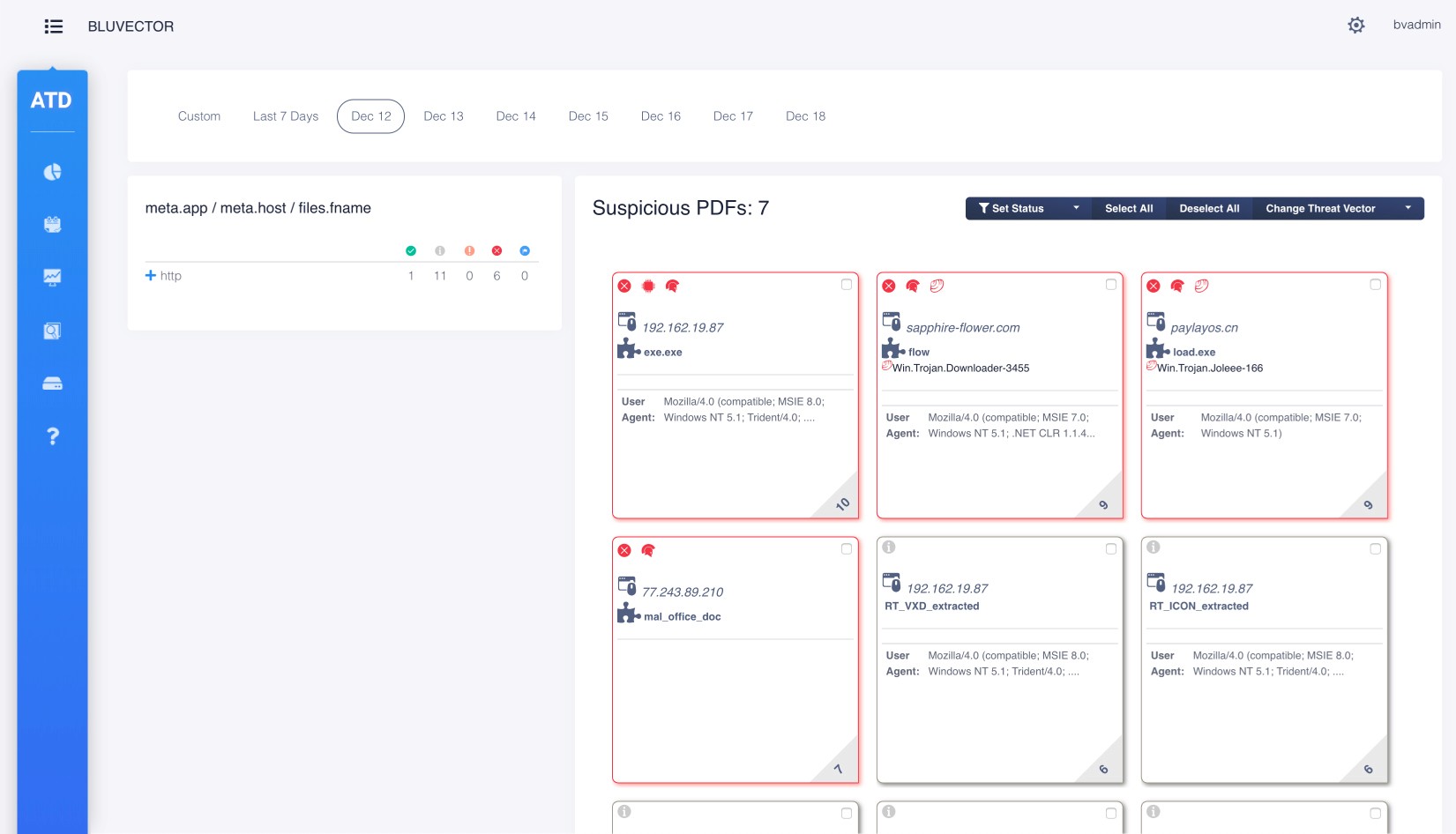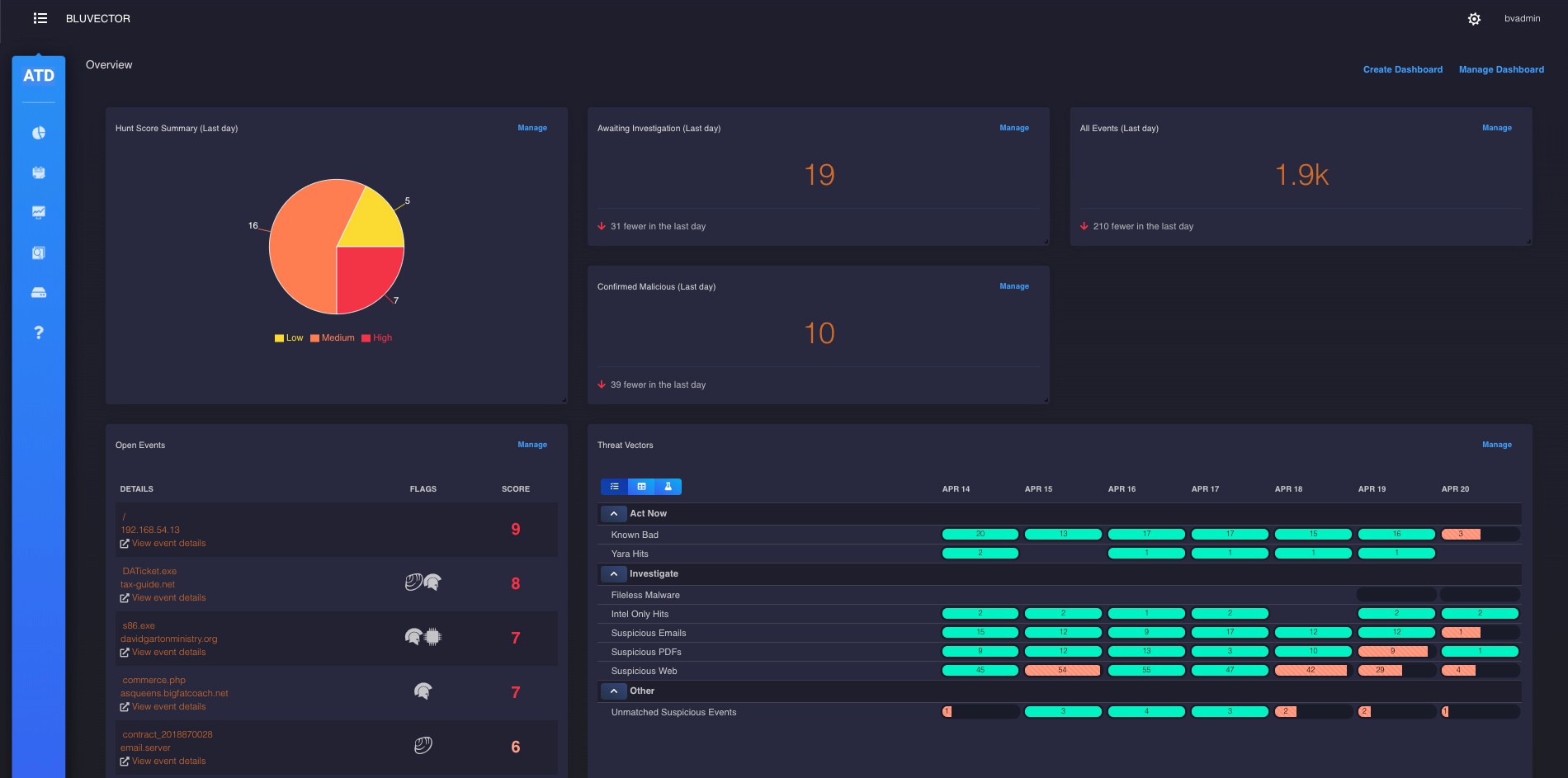 We also aligned the interface to the company rebrand, moving from BluVector Cortex to BluVector ATD (Advanced Threat Detection) so the product name and imagery is unmistakable in screenshots, docs, and demos.