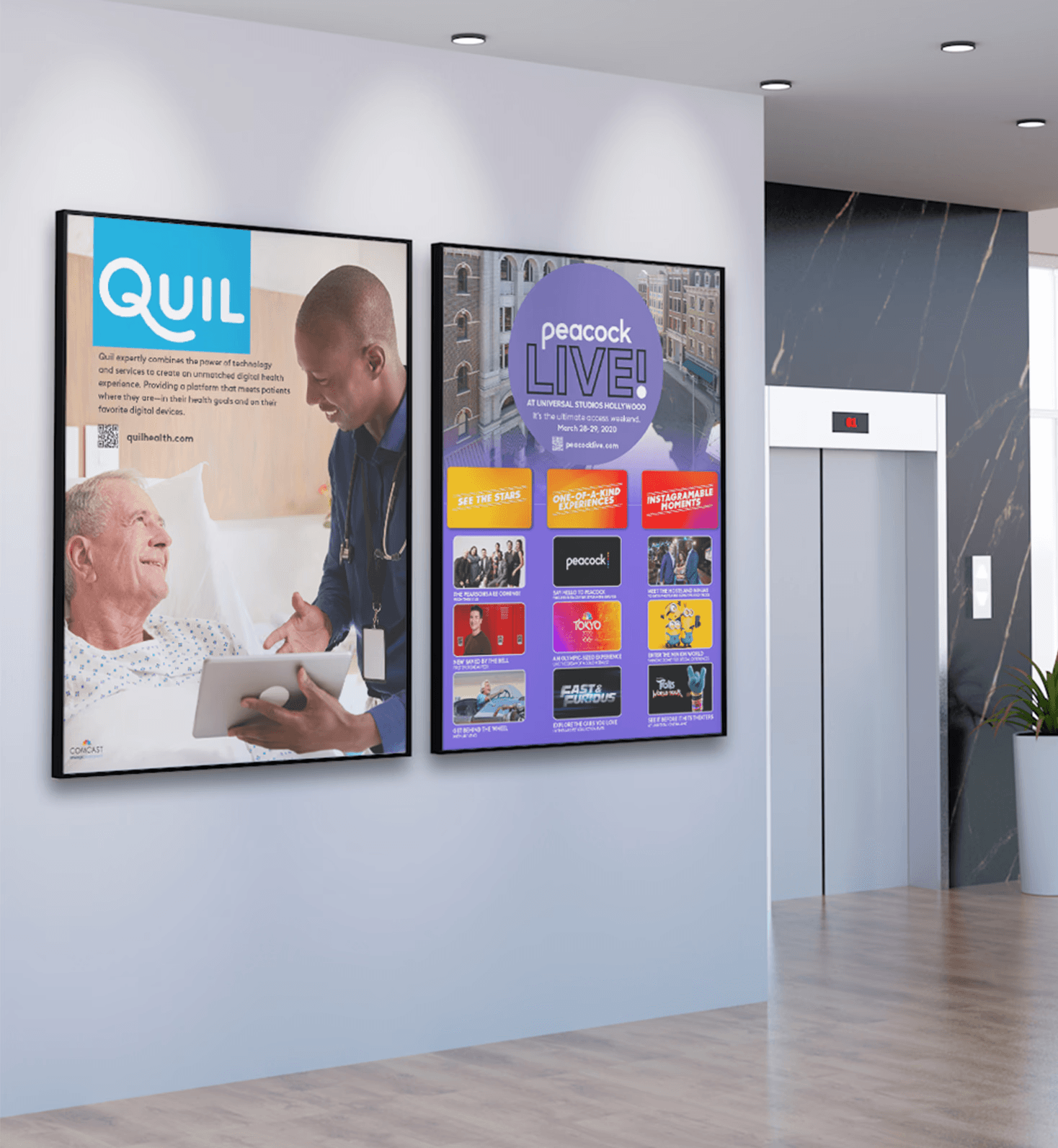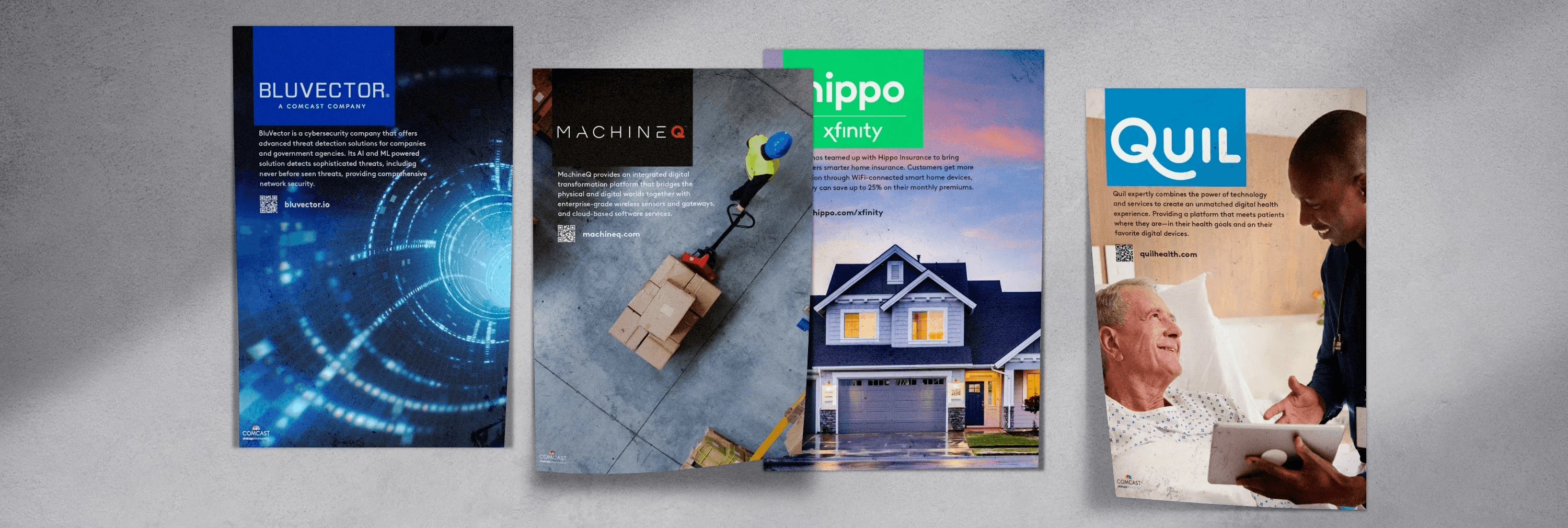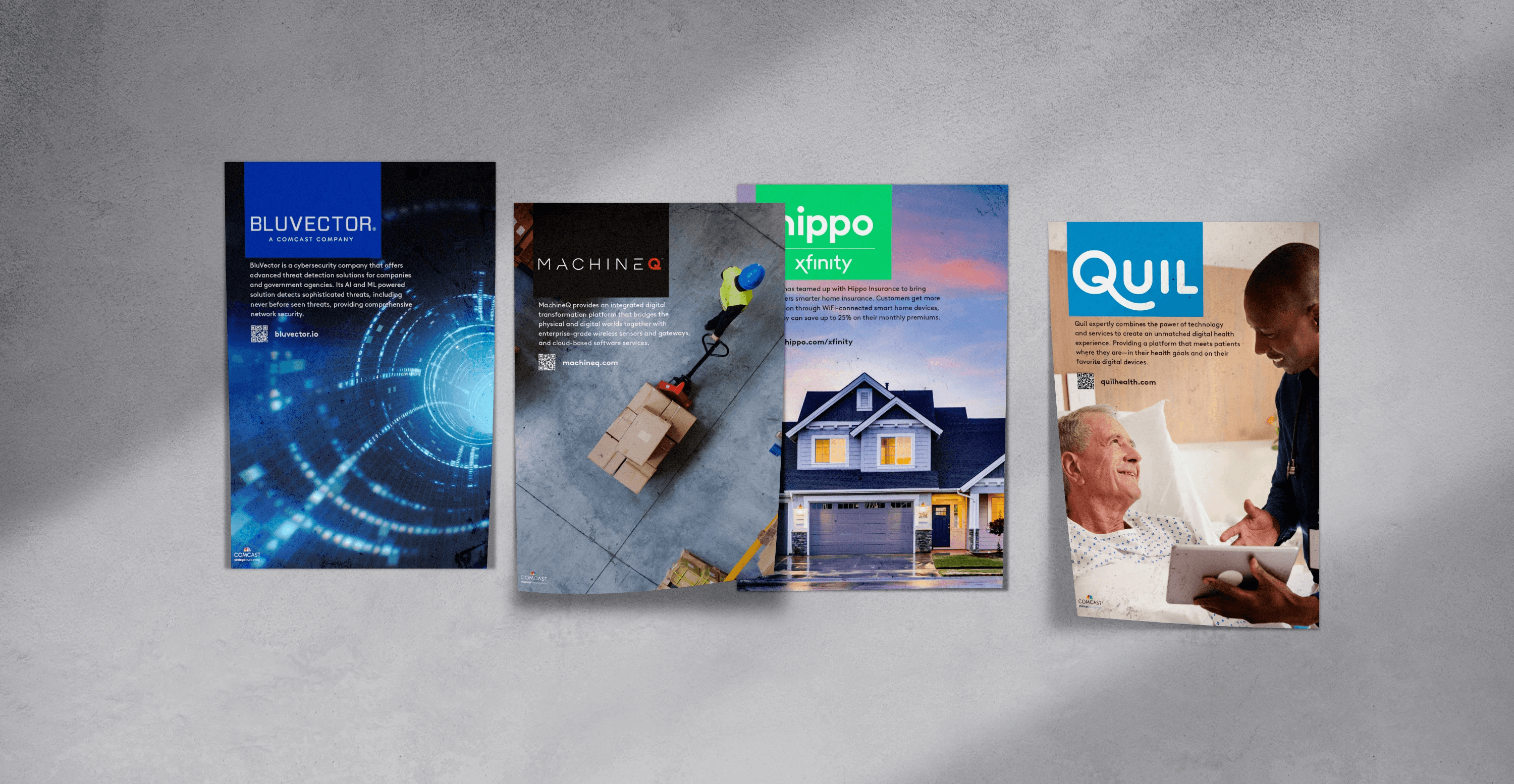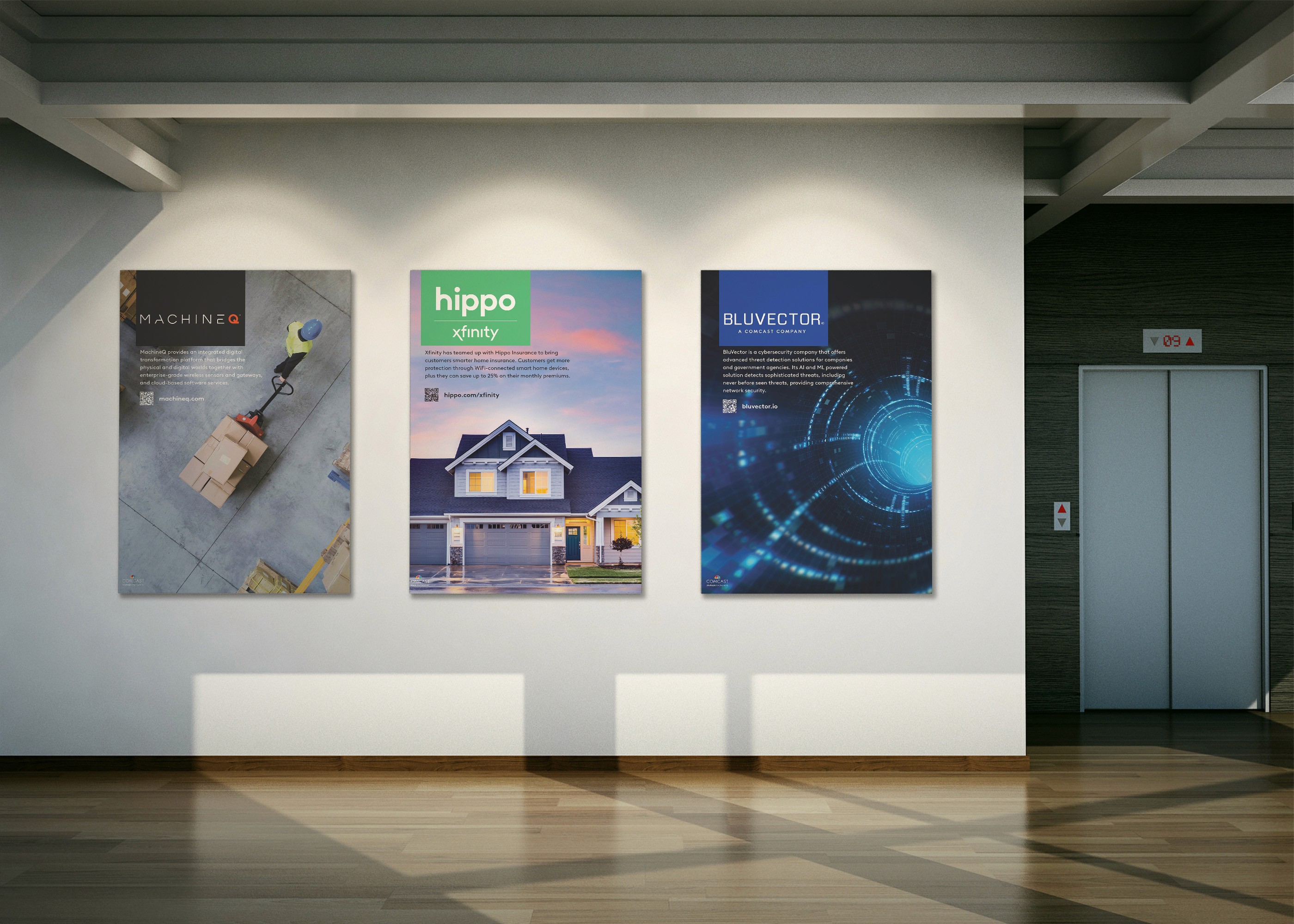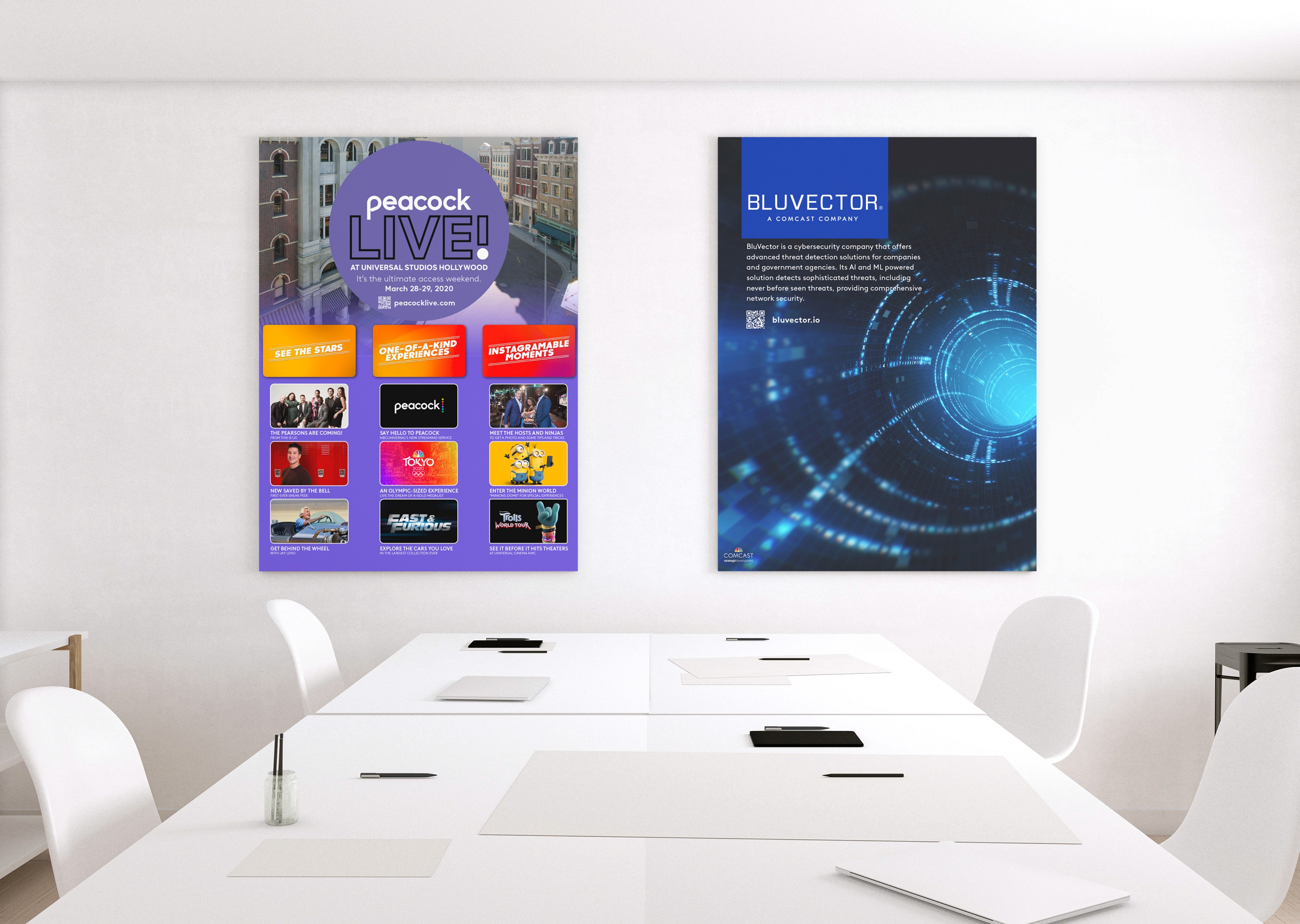 Comcast asked for a simple, minimalist poster template that could promote their recently acquired companies they worked alongside, to employees and clients inside offices and shared spaces.