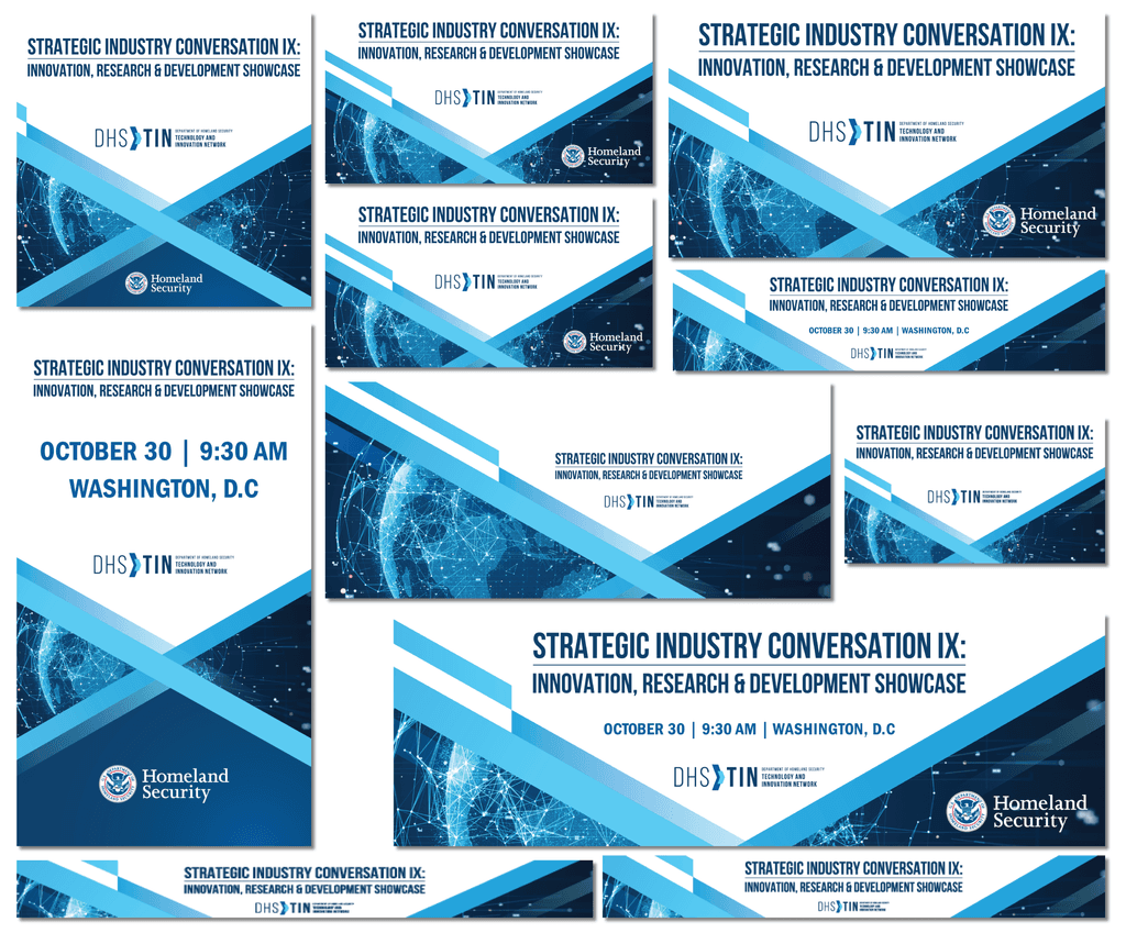 This project focused on developing a strong visual identity for an organization within the Department of Homeland Security (DHS) to support the Strategic Industry Conversation IX: Innovation, Research & Development Showcase—an event convening government leaders, industry partners, and researchers.