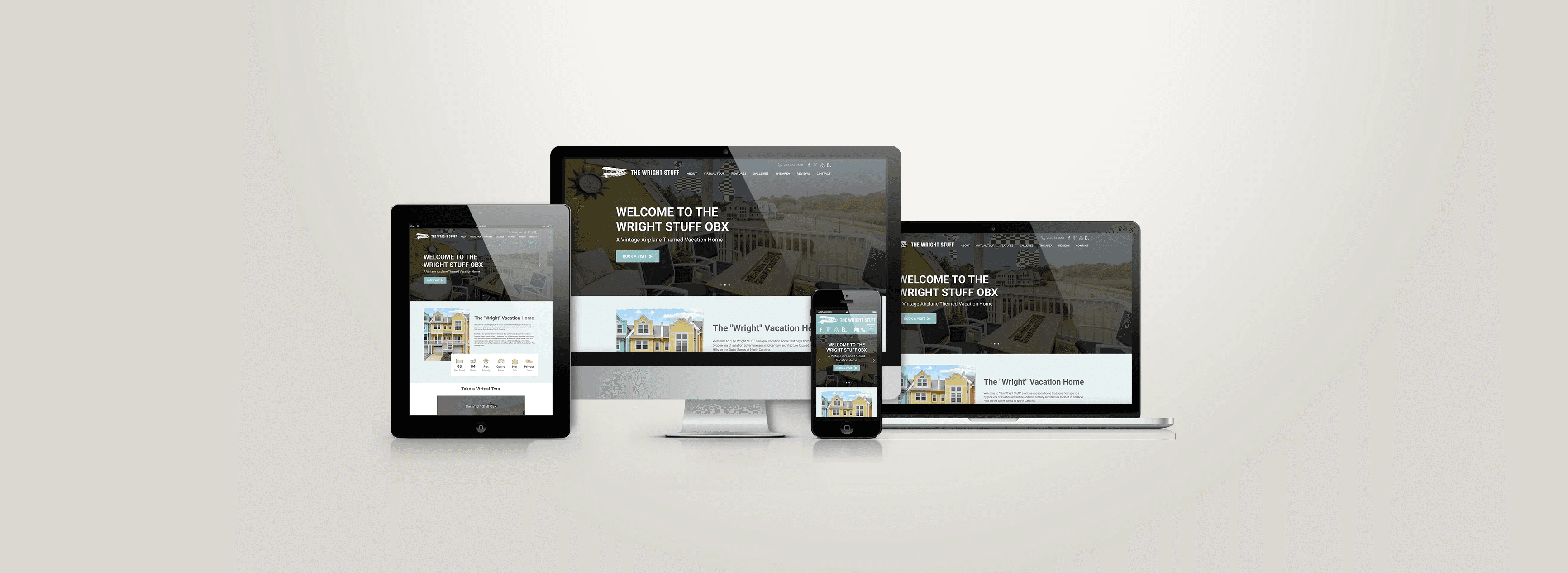 When a family member needed a website to promote a recently acquired beach rental home, I was asked to design and build a website for "The Wright Stuff" in Kill Devil Hills, a property inspired by the nearby Wright Brothers Memorial. The brand centers on a custom logo and a mid-century visual direction that echoes aviation heritage without feeling feeling dated.